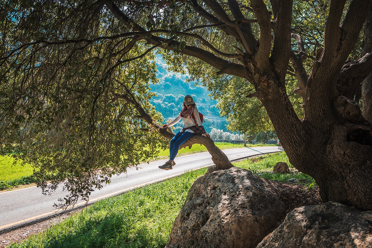 Leave the village by the road and continue along a good track up a deep valley between gardens, eventually rising up to cross a highway near Al Ahliyya university, then making you way around the head of the next valley touching the outskirts of the Christian town of Fuheis. The Carakale Brewery is a few kilometers beyond the stage end.