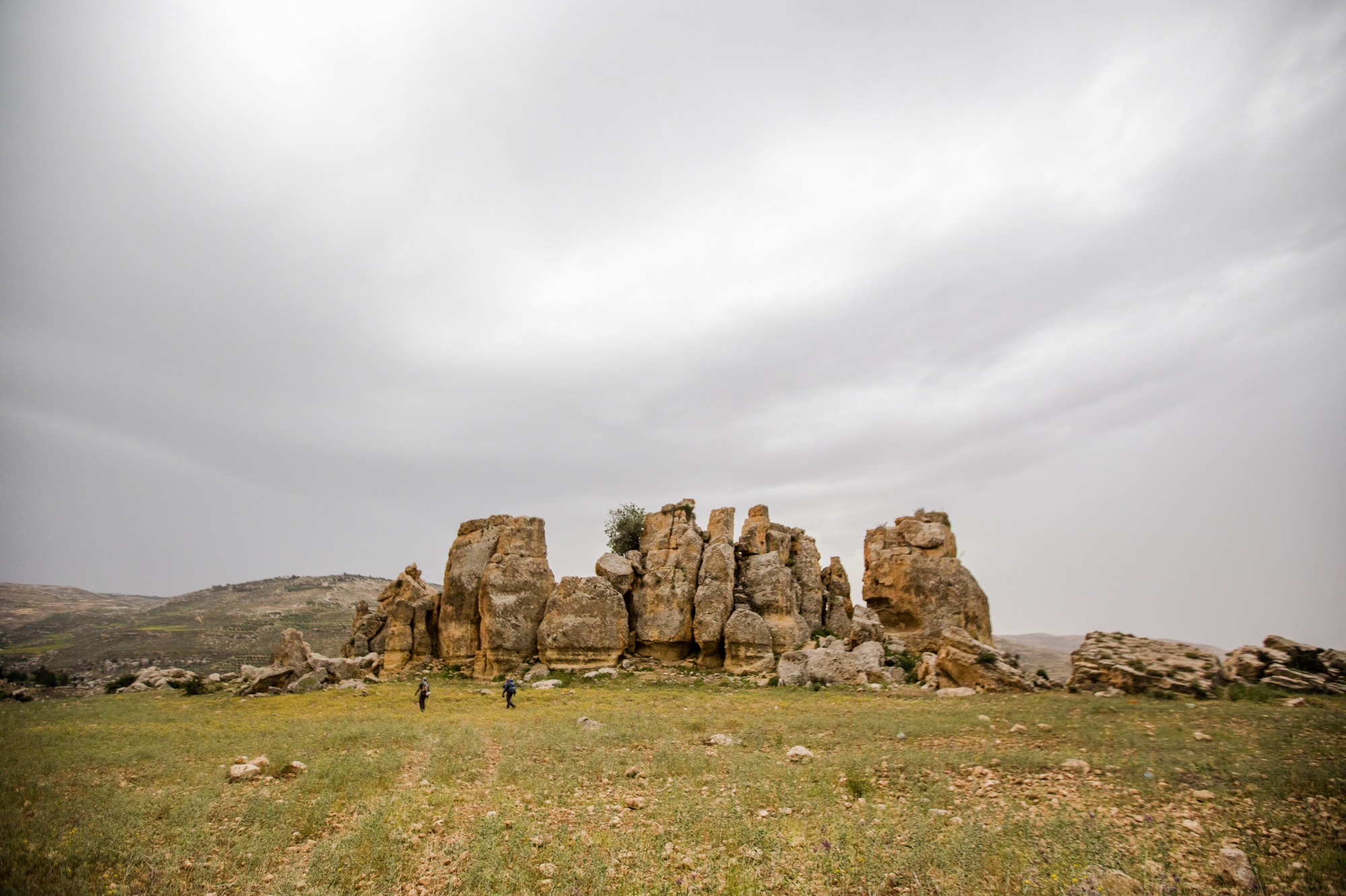 Head south over the hills with good views across the Jordan Valley to Palestine then cross the main road, passing tombs to reach the Husban area.