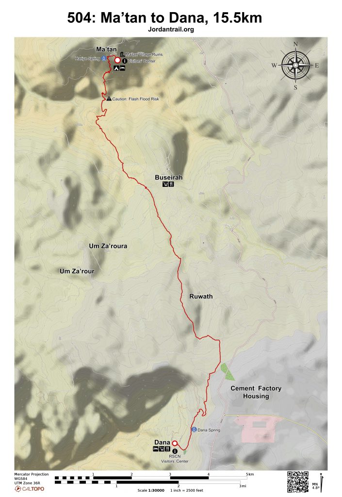 - Flash flood risks in crossing Wadi Ma’tan and the bottom of Wadi Buseirah.