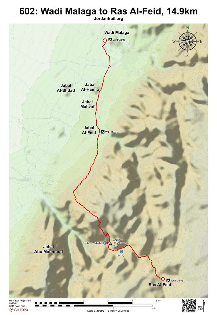 - Water is available approximately 1.5km into Wadi Abu Sakakain (off route)