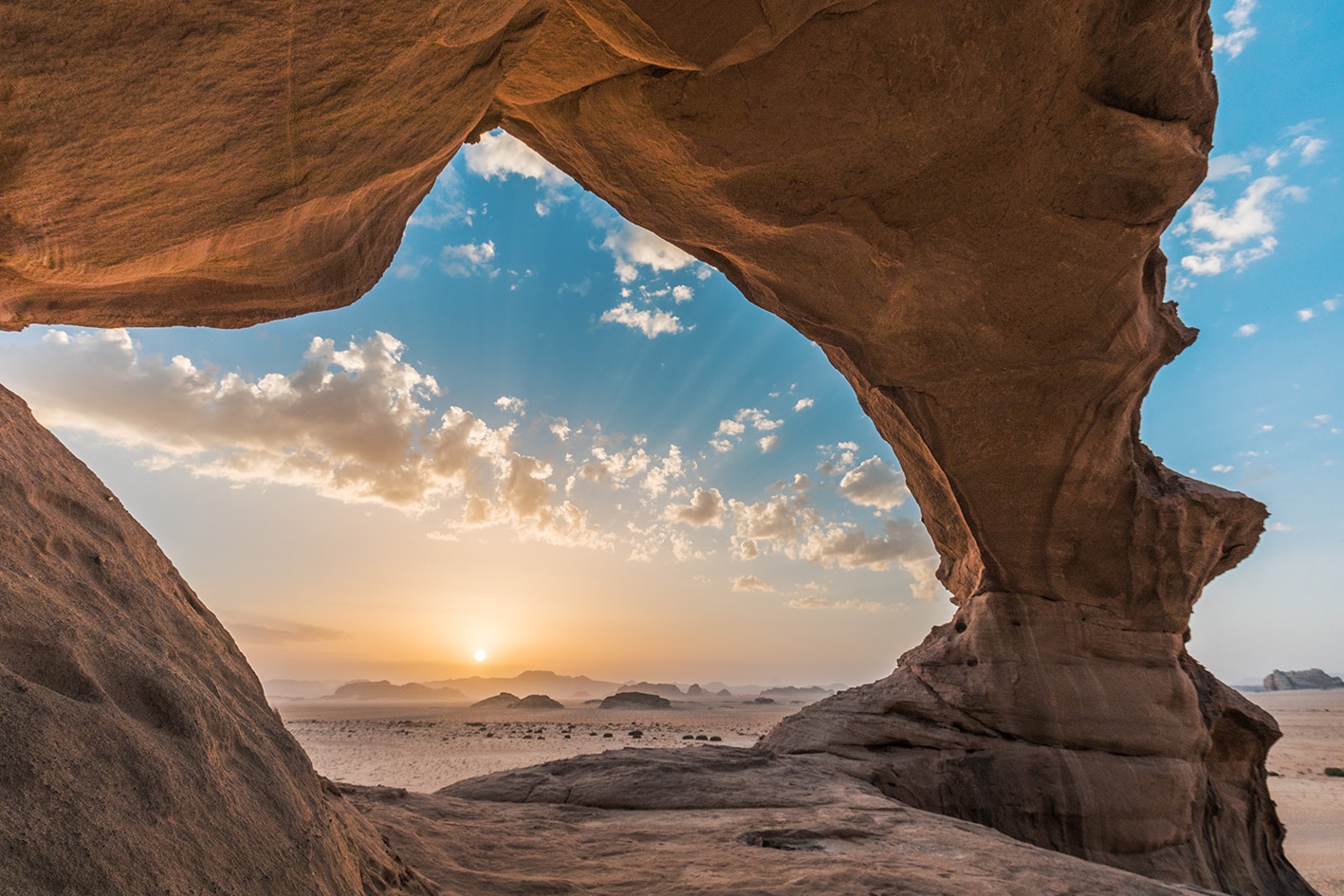 Cross over the shallow sandy Wadi Jdayyel, and see the large Jabal Arga on your left. Head towards Jabal Kharazeh with a huge sandstone arch visible in the middle of the mountain, and cross Wadi Flajeh just before the mountain. A Nabatean cistern is on the backside of the second hill of Jabal Kharazeh, with water year round (off route 2-3km).